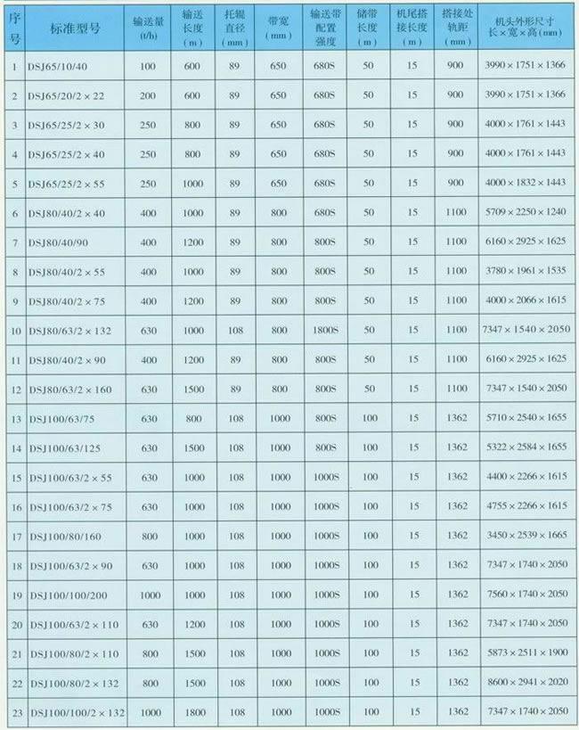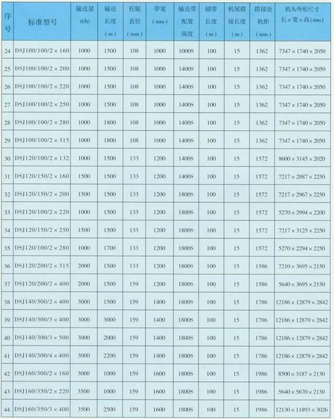 3、煤矿井下用可伸缩带式输送机主要技术参数:
